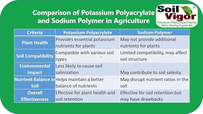 - Potassium polyacrylate is a unique superabsorbent that does not cause soil clumping.