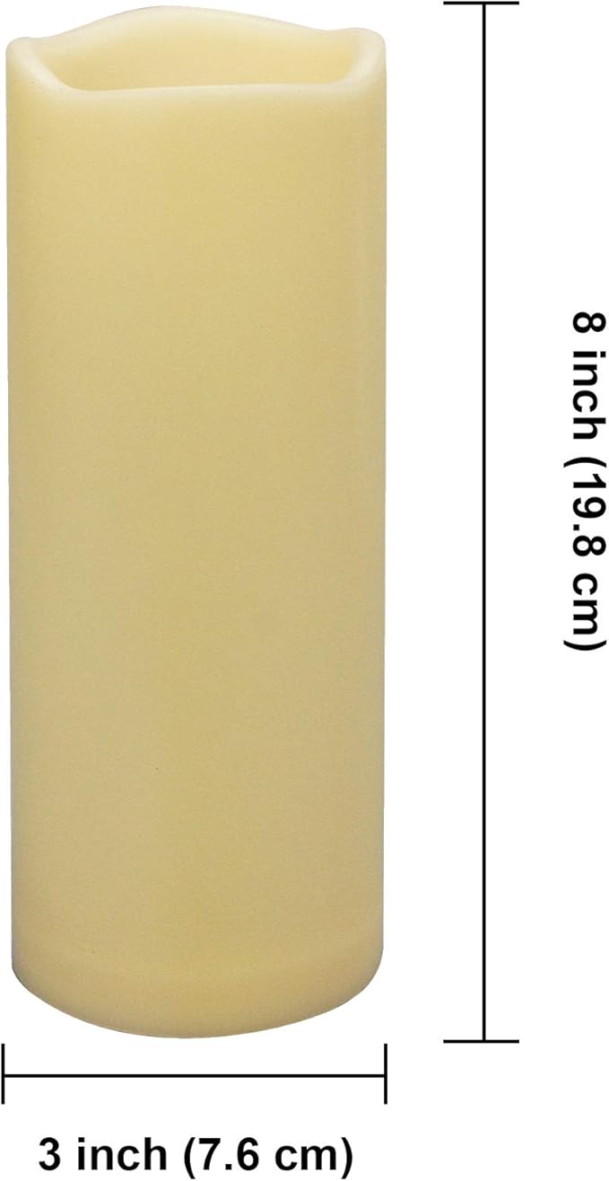 - 【Multi-Purpose】The 3 inch diameter by 8 inch height LED pillar candles are widely used in Halloween, Christmas, holiday seasonal decorations, home, kitchen décor, and weddings, parties, events supplies. It is a good decorative light which light up your whole holiday season. Plastic resin battery operated candle can be used booth indoor and outdoor, to decorate your home, kitchen, bedroom, bathroom, patio, yard, garden and pathway.