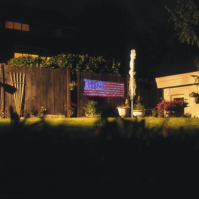 - 420 Bright Bulbs & Memory Function:420 Birght LED lights with a long-lasting lifes pan 100000 hours The color will NOT FADE as time goes. The LED flag net light is IP65 waterproof and withstand light rain or water spills for indoor and outdoor use. And this flag lights also built in Memory Chip save your last modes setting and no need to reset mode every time.
