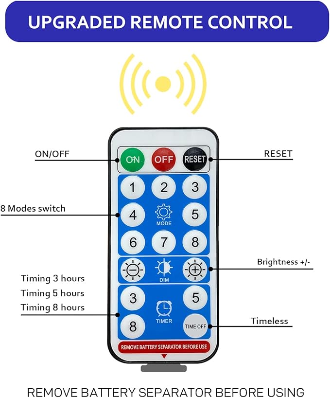 - [Convenient Remote Control] These garden decor solar lights come with a remote control for 8 different flash modes and 3 different brightness levels. Different lighting effect combinations create a magical atmosphere. Build with automatic light sensor function, the sparkler solar lights automatically on at night & off during days. You can also use the remote to set the lighting time for 3/5/8 hours.