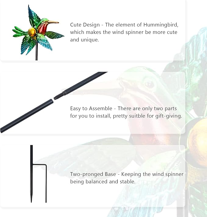 - Light Up Your Garden - Vibrant color makes your garden become that each season there seemed like spring. There is no doubt that the 2 pack hummingbird wind spinners will add a beautiful landscape for your garden