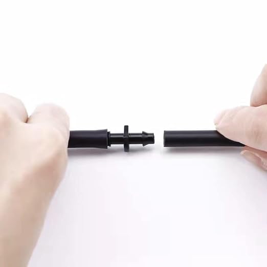 - Barbed design for quick connecting two side of 1/4"drip irrigation tubing,or connect a 1/4" tubing at one end, and a tube with a 4mm hole at the other end