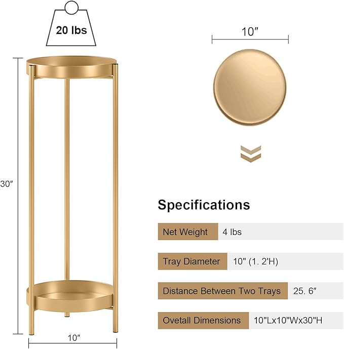 30" Plant Stand, 2 Tier Metal Flower Plants Holder with 2 Removable Display for Indoor or Outdoor,Pot Plant Planter Display(30 X 10in, Gold)