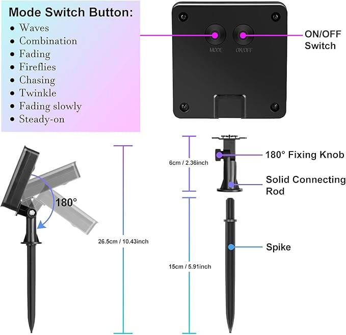 - Super Easy to Install: You surely will enjoy the ease of putting on the string lights for the highly flexible silver wire can be easily bent into any shapes you want and wrapped around trees, fences or any other objects. The solar panels can be either mounted on the wall or plug into the grass to get sunlight exposure. Considerably all necessary mounting accessories are included in the package for instant use