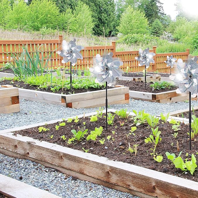 - Garden Spinner : It is easy to use and sturdy enough for any weather. The pinwheels will rotate in the breeze and hold up in the strong wind