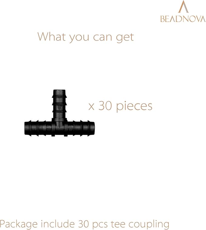 BEADNOVA Drip Irrigation Connectors 30 Pcs 1/2 Inch Barbed Connector Tee Couplings Irrigation Connectors for 1/2 Inch Drip Tubing Water Tubing Gardening Irrigation Supplies (30pcs)