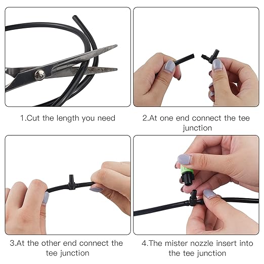 - Product included: 100 Pack of Adjustable irrigation mister with 100 connect Tee. In summer,it will provide you a cool outdoor areas.