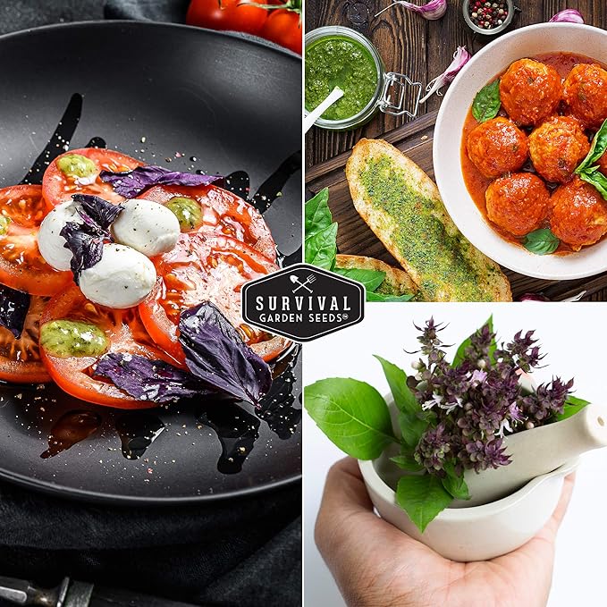 Survival Garden Seeds - Thai Basil Seed for Planting - Packet with Instructions to Plant and Grow Asian Basil Indoors or Outdoors in Your Home Vegetable Garden - Non-GMO Heirloom Variety - 5 Pack
