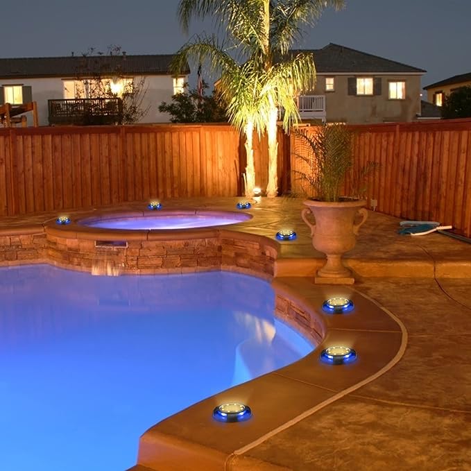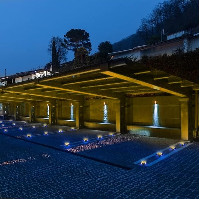- đĄăUpgraded Solar Lights Outdooră12 pieces solar outdoor light have 8 warm white main LEDs and 4 blue side LEDs. unlike the old ground lights, this solar light illuminates a wider range of colors, which is both bright and fun.