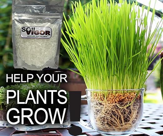 - Soil Vigor super absorbent polymer can absorb water more than 600 times heavier than its own weight