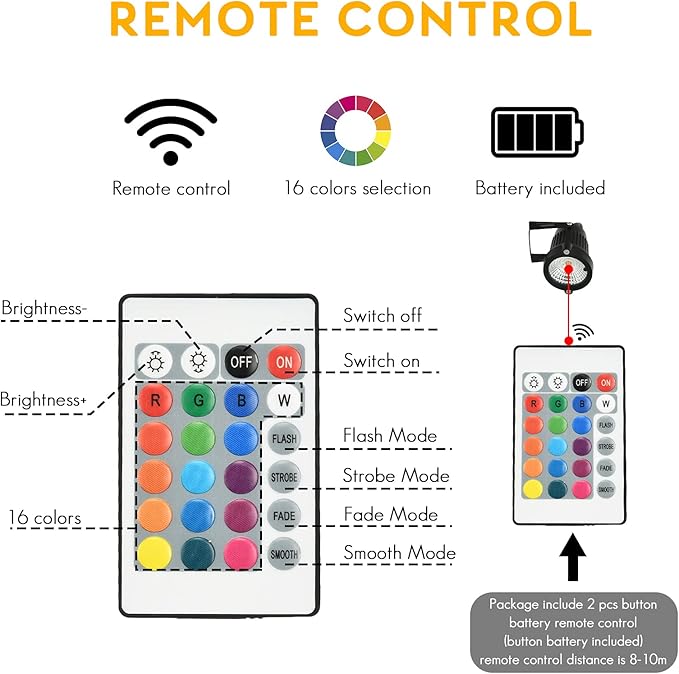 - 16 Colors & 4 Modes: The color and brightness are adjustable. You can change color to create different ambiance for your need. Total 16 different color tones and 4 changing modes providing a variety of lighting effects and dimmable modes to fulfill different requirements. (garden, home, party, landscape, etc.)