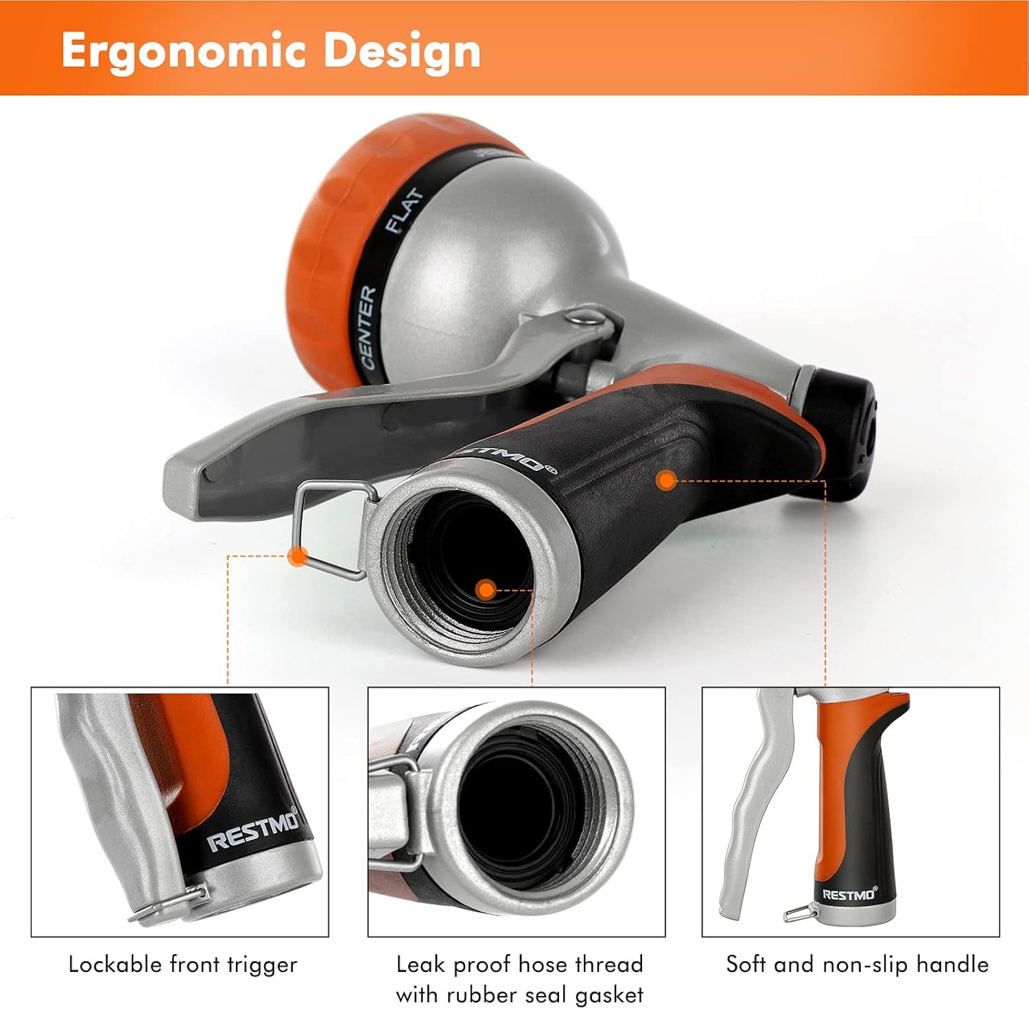 - ERGONOMIC DESIGN: Coated with the soft TPU and non-slip grip, this low-profile hose nozzle adds comfort and avoids hand fatigue. The pistol grip front trigger is easy to hold and can be locked anytime.