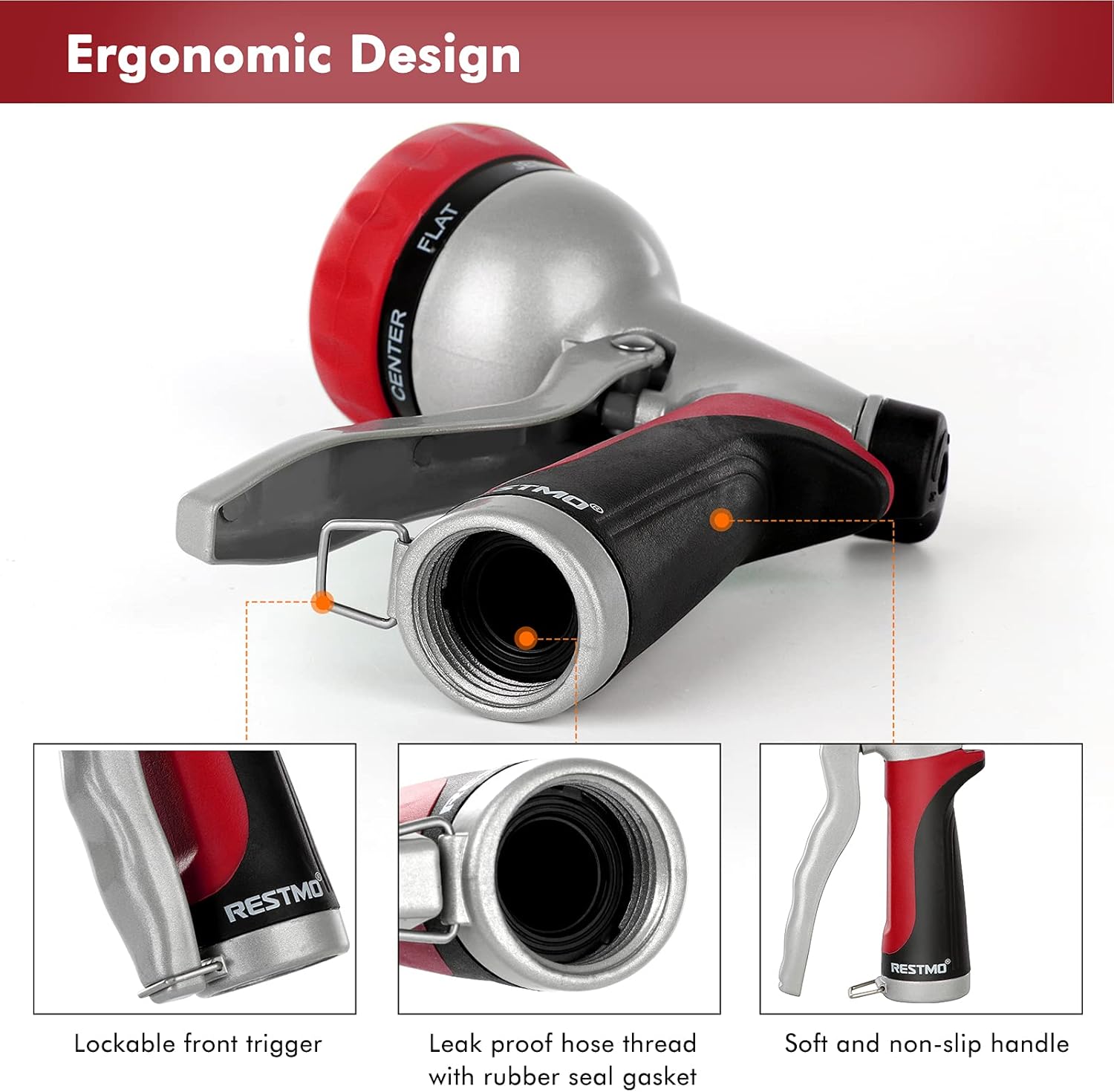 - ERGONOMIC DESIGN: Coated with the soft TPU and non-slip grip, this low-profile hose nozzle adds comfort and avoids hand fatigue. The pistol grip front trigger is easy to hold and can be locked anytime.