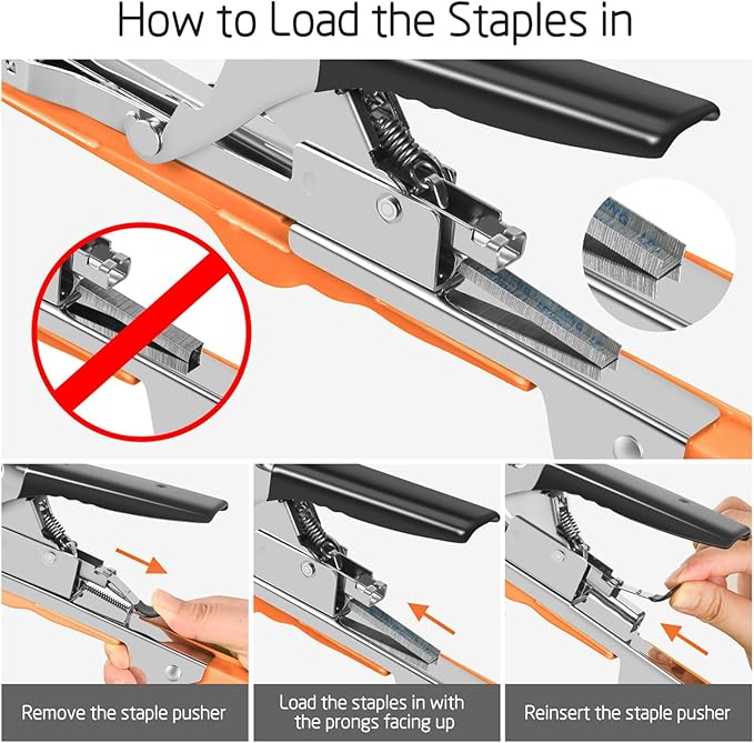 - Easy Operation - Half press to catch tape and then a full press to staple and cut,practice several times to be proficient