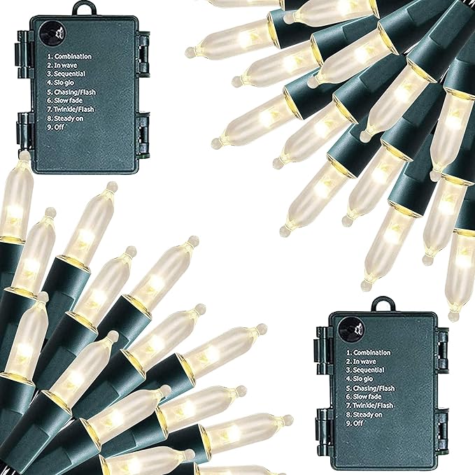 - 8 Lighting Modes: Dazzle Bright mini string lights has 8 different lighting methods, including combination, in wave, sequential, slo glo, chasing/flash, slow fade, twinkle/flash, steady on. Press the button on the battery box to select the lighting mode you like.