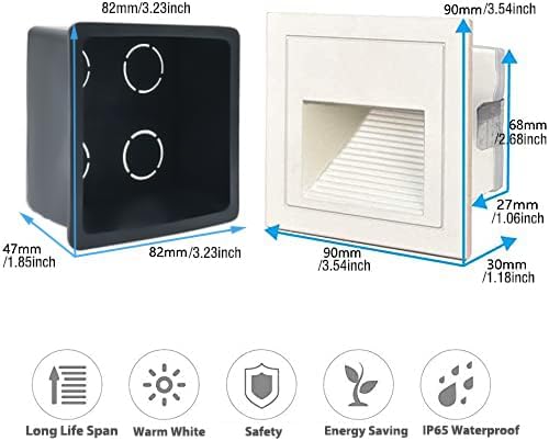 - Good quality: White shell, warm white 3000K, aluminum corner staircase light step light, IP65 waterproof, suitable for indoor and outdoor; (IP65 can prevent the splashing water, but cannot be installed directly under water)
