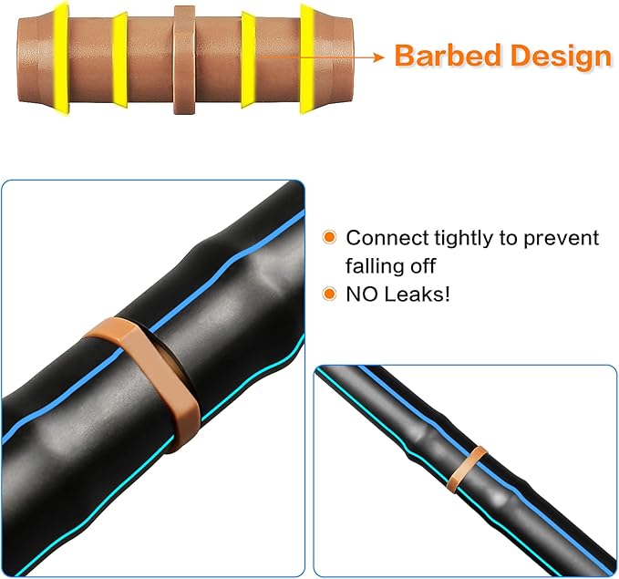 - 【Package Included】It includes 50 Pcs of 1/2”drip irrigation tubing coupling in total.