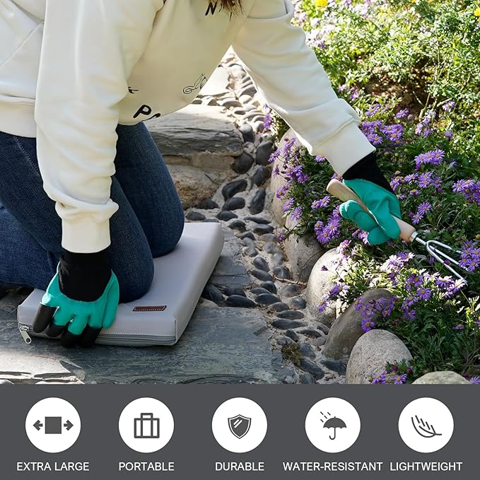 - Durable Material: Made of high density non-recycled foam which can last for many years. This kneeling mat will not compress over time and has non-slip bottom, will not impacts from stones and rough ground when used outdoors.