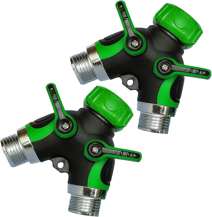 Set of 2 Y Hose Splitters 2 Way, Hose Connector Garden Outdoor Faucet -Water Tap Garden Hose Shut Off Valve Connector for Lawn and Garden- with Comfortable Rubberized Grip (HSLG58)