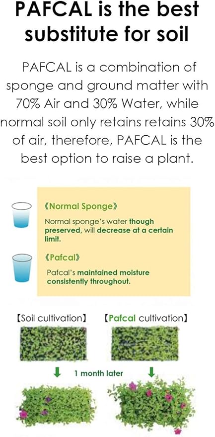 - PAFCAL is a combination of sponge and ground matter with 70% Air and 30% Water, while normal soil only retains 30% of air, therefore, PAFCAL is the best option to raise a plant.