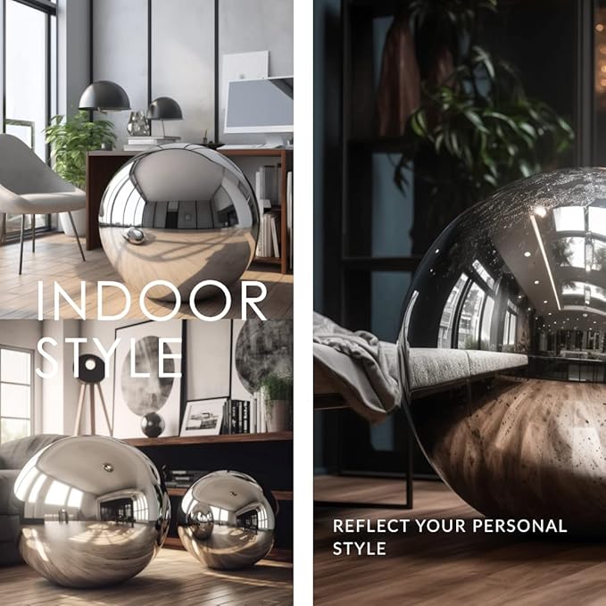 - SHINY MIRROR REFLECTION-The stainless steel garden globes features a reflective mirror polish that catches the light and reflects the surroundings wonderfully, Creates amazing focal points to your home and garden.