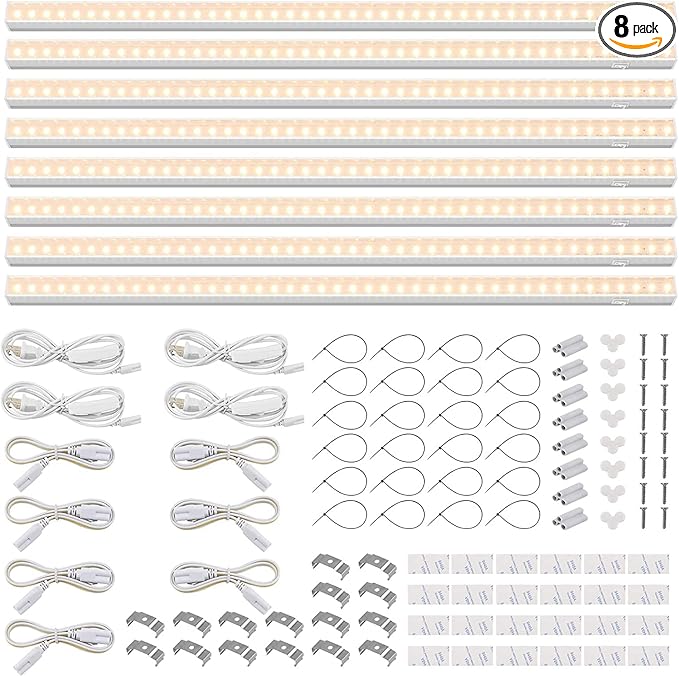 - Easy Install - With included Double-sided Tape, clips and cable ties, you could install the led grow light strips by yourself in minutes. Plug and play, and you could link up to 8 grow lights fixture in a series, saving your installation time