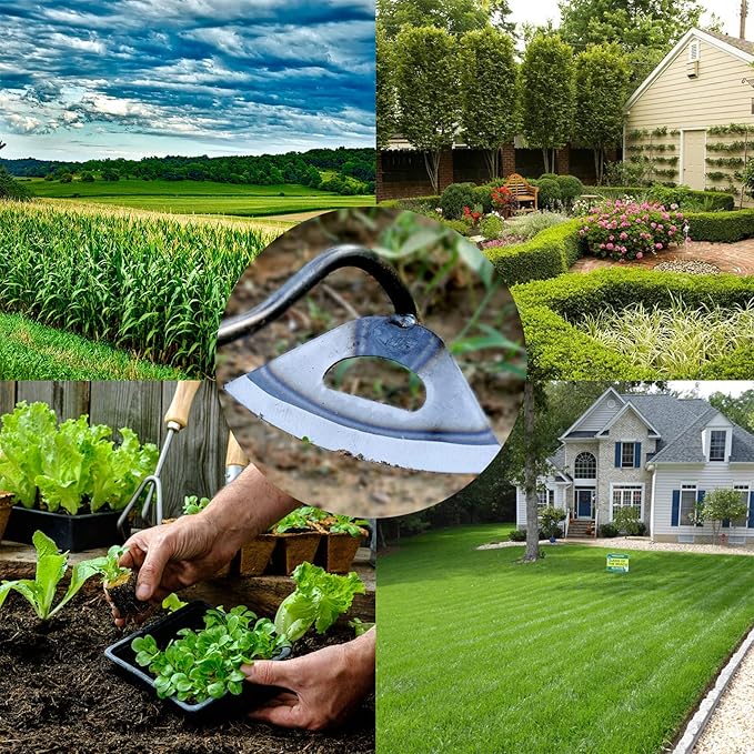 - 【Notes】:This handmade hoe is very sharp. Protective gloves must be worn during use to avoid injury. In addition, it must not be used for children to play, otherwise it will be very uncomfortable.
