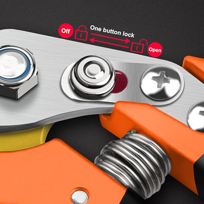 - Safe: Ergonomic handle, comfortable to hold and fit, garden shears features a unique operated safety lock easy to open and close, safe to use and easy to store.