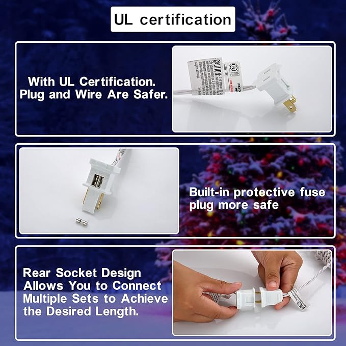 - đăSafe & DurableăPassed UL certification test. IP 44 waterproof feature ensures the Christmas pathway lights can illuminate under a rainy, snowy day. Provide 4 spare fuses and bulbs for replacement in case.