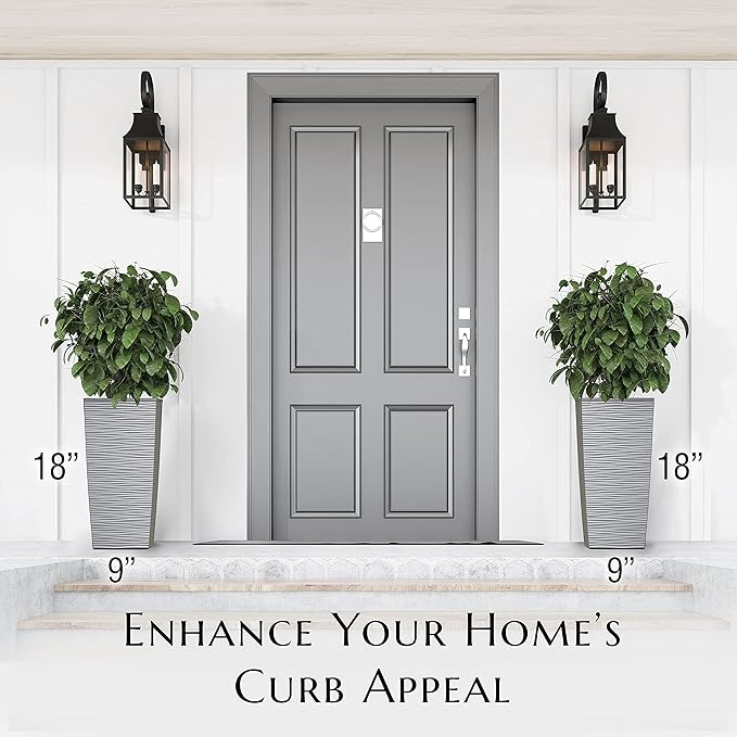 Mueller M-Resin Heavy Duty Tall Planter, Indoor/Outdoor Grande Plant, Tree, Flower Pot, 2-Piece Set, 18”, Modern Design, Built-in Drainage, Light Grey