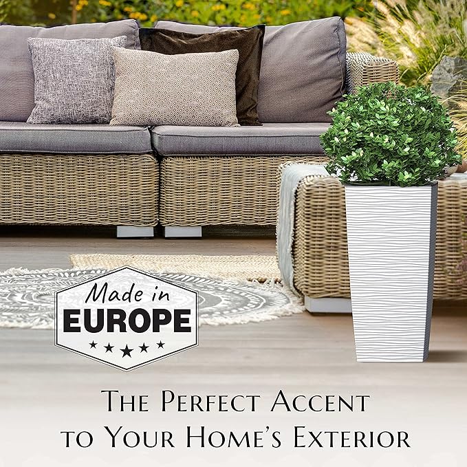 - Modern & Stylish Design – Mueller large planters are designed with matte finishing exterior in soft, wavy shapes, with a ceramic visual display that adds fresh, decorative flair to your space. Perfect for home, office, hotels, restaurants, and other commercial use. Outdoor or Indoor - Ideal addition to any front entrance, poolside patio, or spacious hallway.