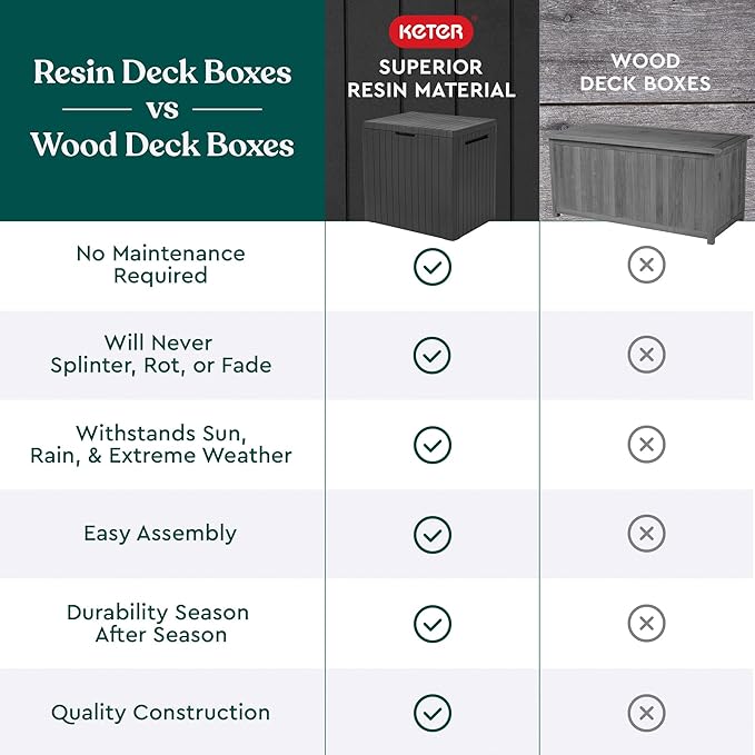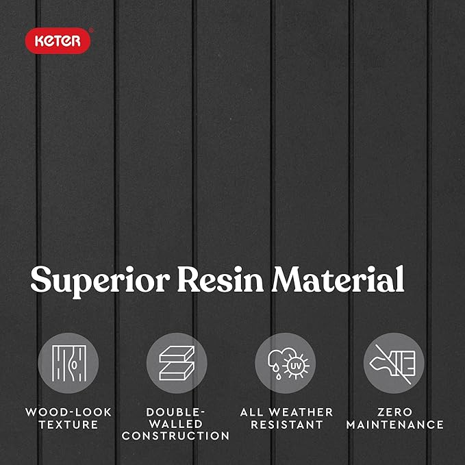- RESIN CONSTRUCTION: It's made out of all weather-resistant resin with an appealing wood-look texture