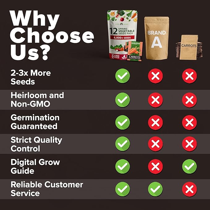 - WORRY FREE GARDENING: Our seeds are consistently tested at or above 95% germination rates under optimal growing conditions. Our vegetable seeds variety pack includes a Growing Guide that can help you on your gardening journey.