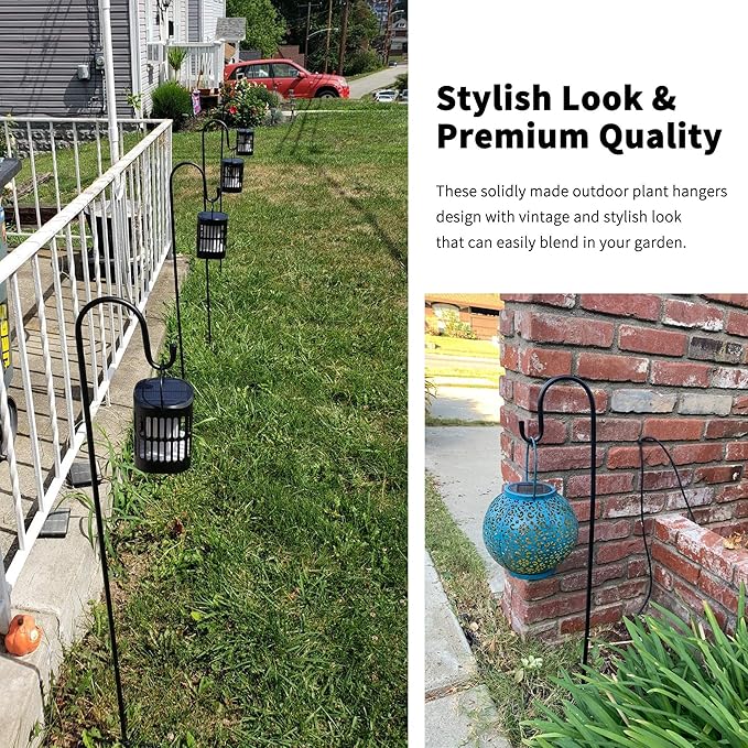 - 【Stylish Look & Premium Quality】These solidly made outdoor plant hangers are designed with vintage and stylish looks that can easily blend in your garden. They are made of heavy-grade steel with smooth black powder coating, which is rust-free and sturdy for lasting long service life.