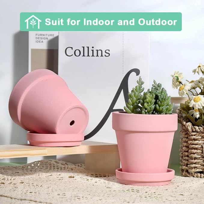 - 【Ideal for Indoor or Outdoor Usage】The terra cotta pots are included Saucer, so you can put them at your balcony, windowsill, table or working desk.