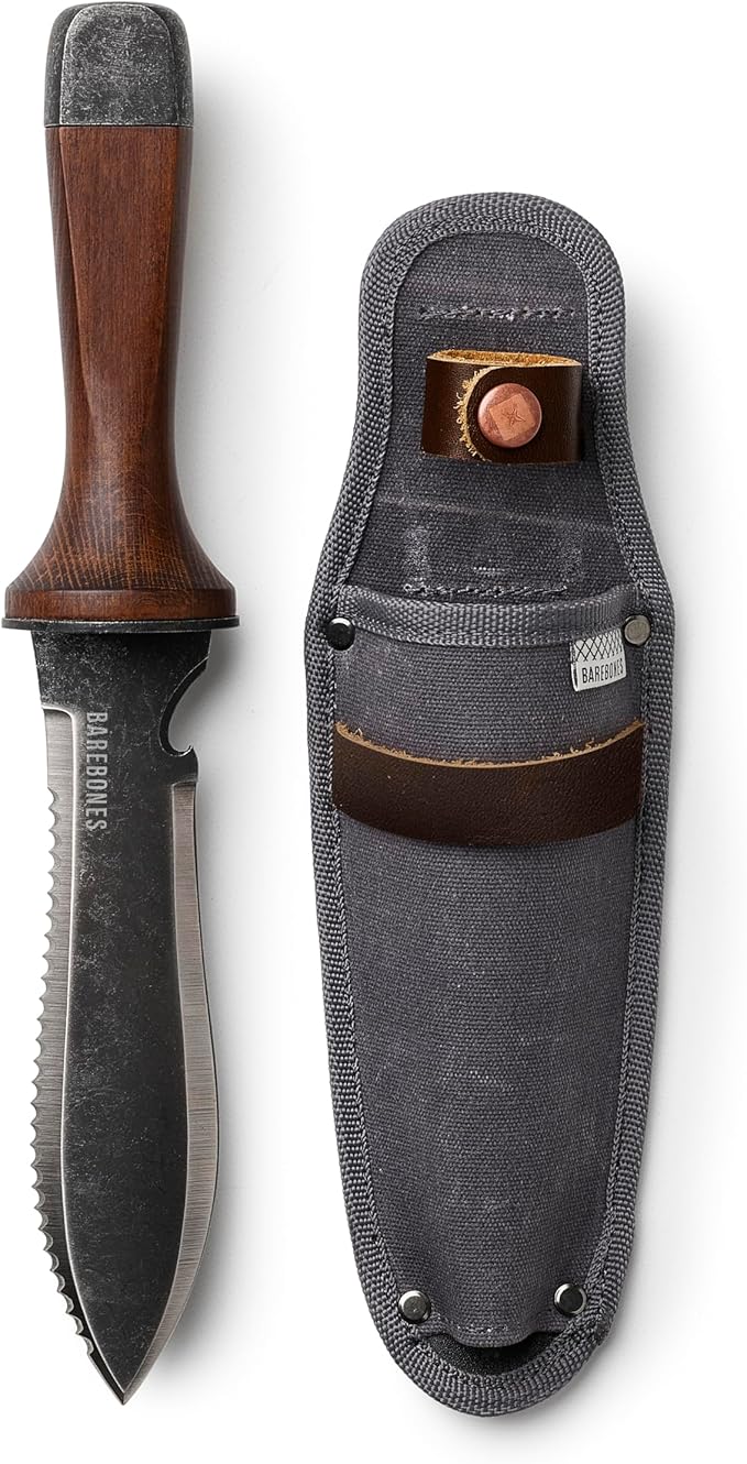 Barebones Hori Hori Ultimate - Garden Knife with Double-Edged Tempered Steel Blade, Walnut Handle, Ambidextrous Use, Japanese Knife Garden Tool for Weeding and Gardening (Tool & Sheath)