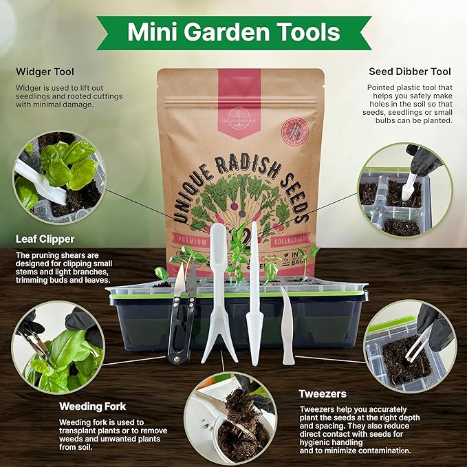 - 🏡 Fresh Radish from Seeds to Your Table All Year Round. Grow radishes from seeds everywhere - Indoor in aerogarden, window, and hydroponics garden or transfer them to your Outdoor Home Garden. Our radish seeds for planting are also suitable for Microgreens and Sproutings. Grow your seeds and enjoy healthy meals with the help of our cooking guide.