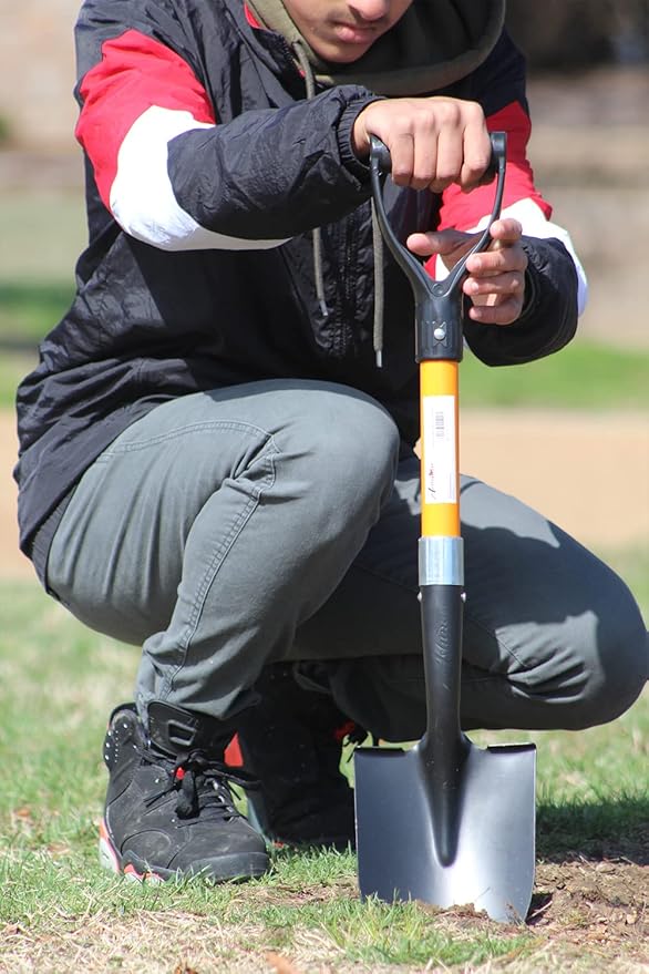 - 【SHORT HANDLE SHOVEL】The shovel is 28 inches long overall. You may put it in your camping backpack for outdoor camping and metal detecting, or you can place it in the trunk of your car to help your car get out of problems. It can do modest gardening tasks. You need a little shovel for the job when a long-handled shovel is insufficient in a confined place.