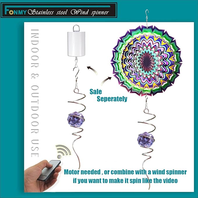 - 【PREMIUM CRYSTAL SUNCATCHER】The spiral with crystal is a special sun catcher rainbow maker, it’s Super Sparkly under sunshine. You can also add a motor(not include) to let the spiral to spin ,while spiral tail rotating (it can’t spin by itself.), the crystal ball seems to move up and down like floating and dancing in air while spiral tail rotating, presents the magical visual illusion.