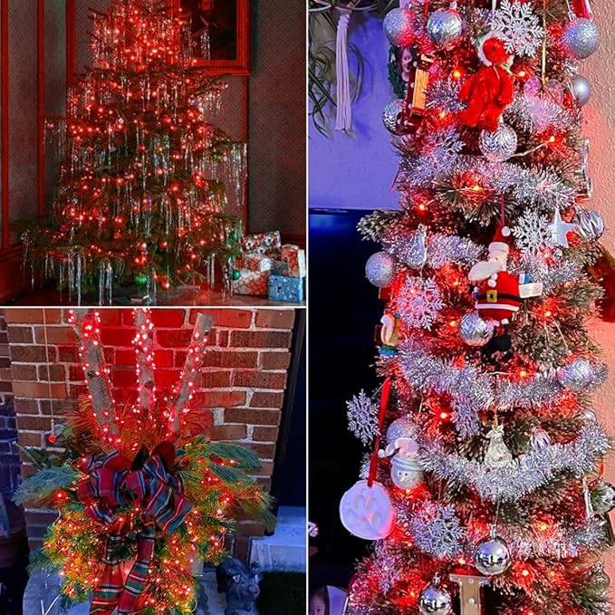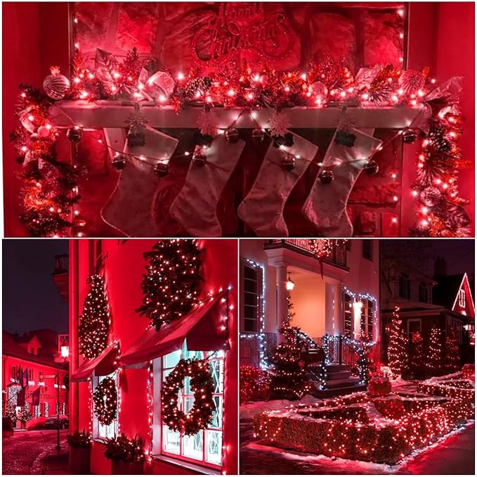 - Perfect for Christmas Decorations: Fairy Lights with red light accent your space with a unique, inviting glow. Purchasing 4 pack solar fairy lights at once is more affordable! 400 LED 132ft length suitable for a variety of large holiday scenes such as gardens, parties, patios, or can be used individually to decorate a variety of smaller scenes such as flowers, fences, trees, balconies.Don't hesitate especially if you love red like me. Red solar lights are a nice addition to Christmas decor.