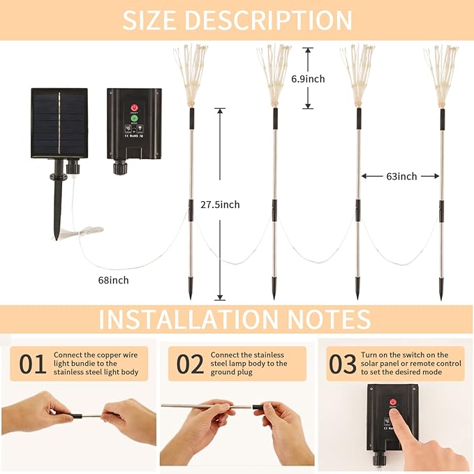 - 【Gift Choice】This firework light can be used on Thanksgiving, Halloween, and Christmas as the most expensive gift you can give to family and friends. It can be used in courtyards, gardens, paths and other places to illuminate you and your family, and accompany you to spend a wonderful holiday.