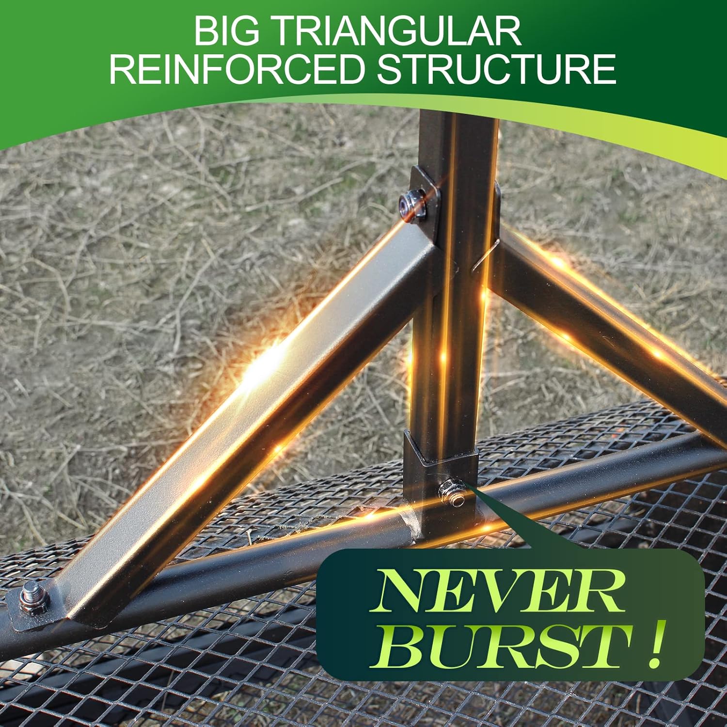 - UPGRADE HANDLE &DURABLE STRUCTURE: All high-quality steel construction and powder-coated finish make the compost spreader is sturdy and durable, the metal mesh basket surface is heat spray-treated to prevent rusting, corrosion resistant, and long-lasting. With the upgrade T-handle to avoid broken and makes it more durable and sturdy. Lightweight material makes lawn care even more enjoyable and easy to transport, ergonomic rubber handle grips for non-slip and comfortable.