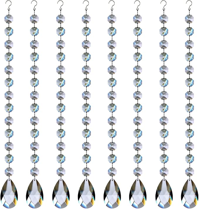 - VALUE PACK- 8 strands teardrop crystal chandelier prisms, each crystal prism include 1pc 2”/50mm teardrop pendant connected 13pcs 0.55”/14mm octagon beads with stainless jump rings