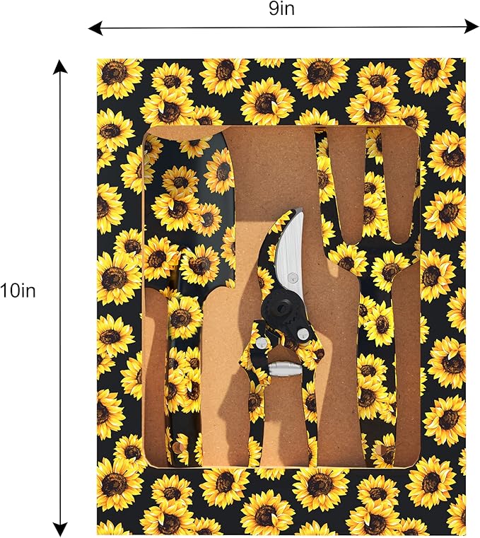 GARTOL Garden Tool Set - 3 Piece Thickly Cast Aluminum Gardening Tools Kit with Flower Paint, Heavy Duty Hand Garden Tools with Box Include Trowel, Rake, Pruner Shear, Gift for Gardener (Sunflower)