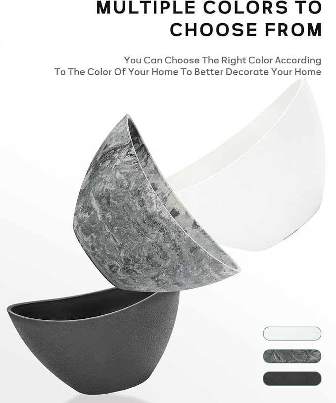 - 【Durable and Lightweight】 Made of durable and eco-friendly ABS material, this flower pot is lightweight and easy to move. These containers won't crack or discolor from extreme cold and heat. Can be used freely indoors and outdoors. A saucer (not included) is required for indoor use.