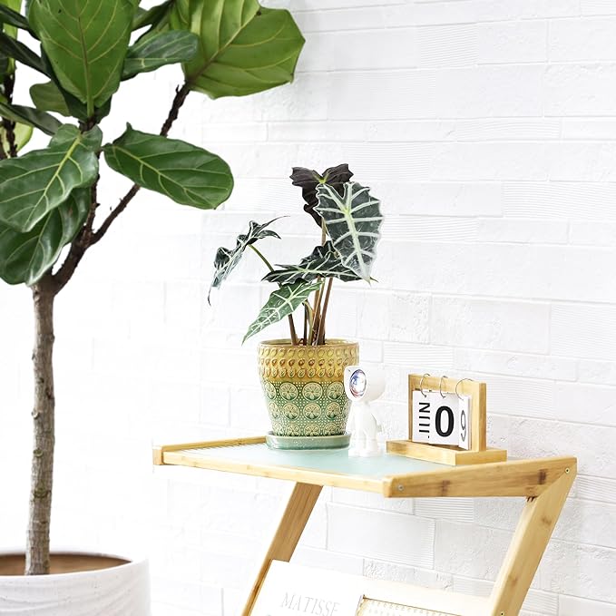 • Ceramic Planters: Set of 2 round 6 inch and 5 inch ceramic flower pots with elaborate embossed patterns for indoor-outdoor decoration