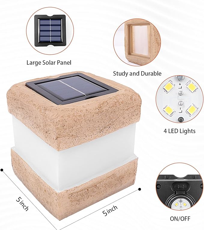 - 【Solar Powered Energy Saving Lights】These landscape lights are 100% solar powered, zero electricity bill, energy saving and environmental protection. With large solar panel design, it has higher solar conversion rates. These solar rock lights are brighter and have a longer lighting time up to 8 hours after fully charging 6-8 hours . Product size:5"L*5"W*5"H.