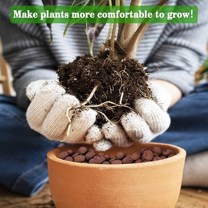 - All Natural Expanded Clay Pebbles: Made of natural clay, baked at high temperature into round pellets, pH neutral helps remove excess acidity, sturdy, no odor, not easy to break, you can safely use it in your garden to help plants grow healthier and faster; Widely used for plant pavement, pot base and hydroponics