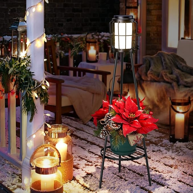 2 Pack Solar Lights Outdoor with Plant Stands, Solar Floor Lamp, Solar Powered Street Lights Metal Tripod Deck Lights, Patio Decor for Garden Yard Pathway Driveway Porch