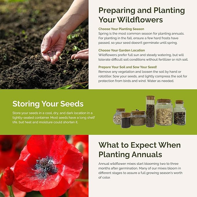 - Attracts Pollinators - With up to 6,000 square feet of ground cover, this non-GMO seed mix is sure to bring the bugs and birds to your yard! Easily attract bees, butterflies, and hummingbirds to pollinate blooms.